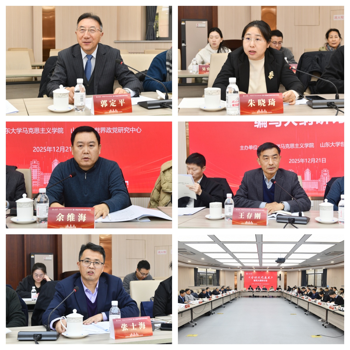 为推进《全球政党通史》的研究编撰工作,由山东大学世界政党研究中心、山东大学马克思主义学院主办的《全球政党通史》第二次编撰大纲研讨会于12月21日在山东大学召开。中共中央对外联络部当代世界出版社李双伍社长,山东大学世界政党研究中心主任王韶兴教授,中共中央对外联络部当代世界研究中心柴尚金研究员,中共中央对外联络部世界政党研究所唐海军研究员,中共中央对外联络部《当代世界》编辑部张凯主任,中国政治学会学术委员会副主任,山东省社科联学术委员会名誉主任包心鉴教授,中国社会科学院拉丁美洲研究所袁东振研究员,北京大学马克思主义学院郇庆治教授,中国人民大学当代政党研究平台研究员朱晓琦副教授,复旦大学陈树渠比较政治研究中心主任郭定平教授,复旦大学政党建设与国家发展研究中心主任郑长忠教授,南开大学周恩来政府管理学院副院长郭道久教授,南开大学政党与世界政治研究中心主任王存刚教授,华东师范大学马克思主义学院齐卫平教授,华中师范大学国外马克思主义政党研究中心主任余维海教授,中国政法大学马克思主义学院副院长吴韵曦教授,山东师范大学马克思主义学院高继文教授,山东大学党内法治研究中心主任肖金明教授,中央统战部中国新型政党制度理论研究山东(山东大学)基地执行主任臧秀玲教授,山东大学世界政党研究中心兼职研究员陈海燕教授以及各卷参与人出席会议。山东大学马克思主义学院院长、世界政党研究中心副主任张士海教授主持会议。